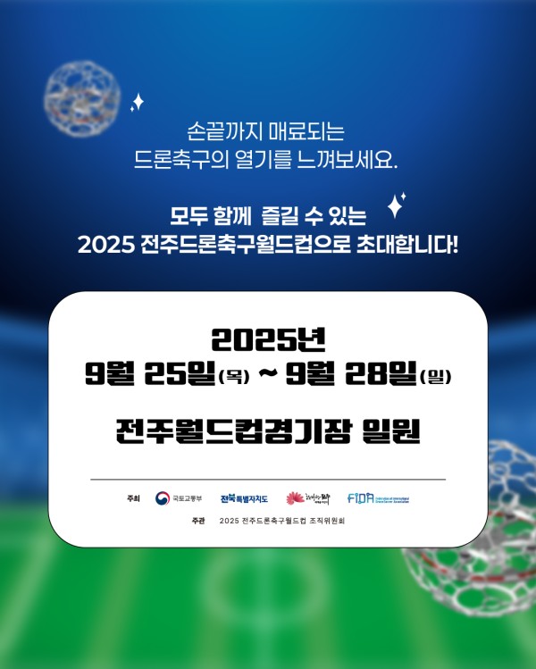 - 이전글전주에서 시작한 드론축구, 세계가 주목하는 미래 스포츠로 성장하다 25.09.02