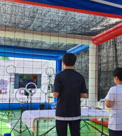 양 팀은 한 세트가 끝난 후 정비시간을 이용해 드론축구볼 정비 및 작전회의를 진행해야 합니다.